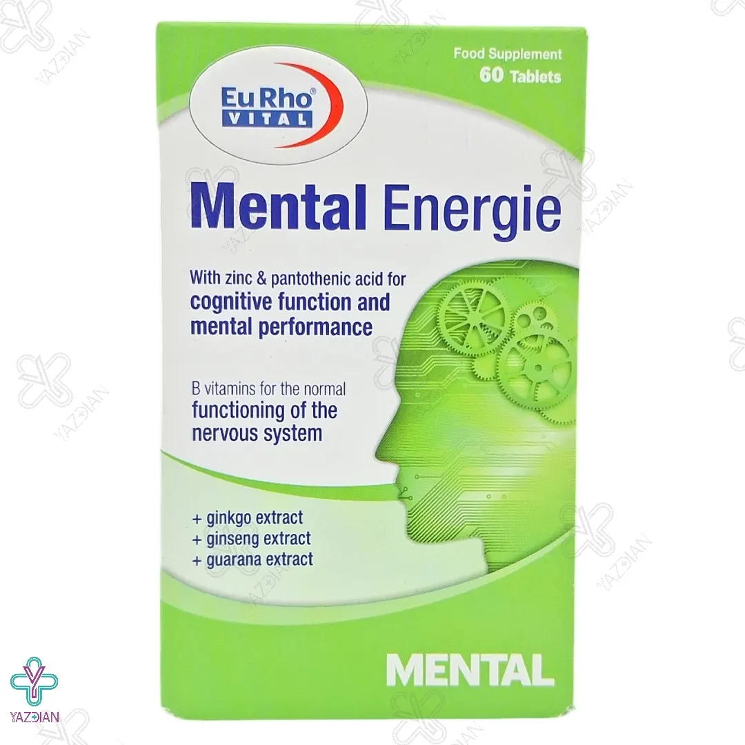 قرص منتال انرژی یوروویتال (Eurho Vital Mental Energie 60 Tabs) با هدف تقویت نمودن توان ذهنی و حافظه تهیه شده است و می تواند بیماری های نورولوژیک نظیر زوال آلزایمر و زوال عقل را درمان نماید.