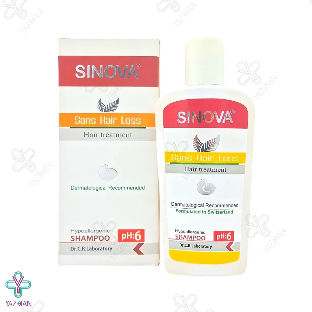 شامپو تقویت کننده و ضد ریزش سینوا (Sinova Sans Hair Loss Shampoo 200 ml) با دارا بودن فرمولاسیونی جدید و مؤثر می تواند موها را به خوبی تقویت کرده و ریزش موها را کنترل و درمان نماید.