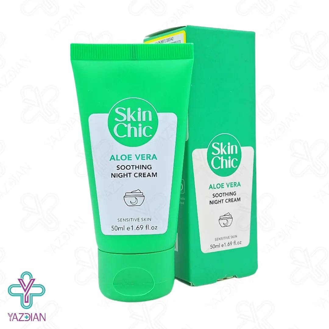 کرم مرطوب کننده شب آلوئه ورا اسکین شیک - 50 میلی لیتر (Skin Chic Aloe Vera Soothing Night Cream - 50ml) یک مرطوب کننده پوست فوق العاده می باشد که بدلیل بکارگیری مواد اولیه با کیفیت، ماندگاری بالایی نیز روی پوست دارد. این کرم برای استفاده در شب تهیه شده است که پوست را تقویت و تغذیه رسانی کرده و سبب ریکاوری و بازسازی آسیب دیدگی های پوستی در شب می شود.