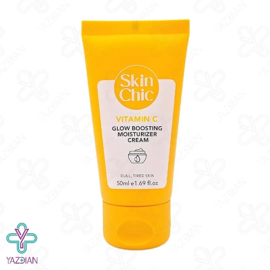کرم مرطوب کننده و روشن کننده صورت ویتامین ث اسکین شیک - 50 میلی لیتر (Skin Chic Vitamin C Lightening Cream - 40ml) با غنی بودن از ویتامین سی در ترکیبات خود، عملکرد فوق العاده ای در روشنی و شفافیت پوست داشته و با افزایش جذب کلاژن (پروتئین مهم پوست) خاصیت ارتجاعی پوست را بالا می برد و سبب جوان سازی بیشتر پوست می شود.