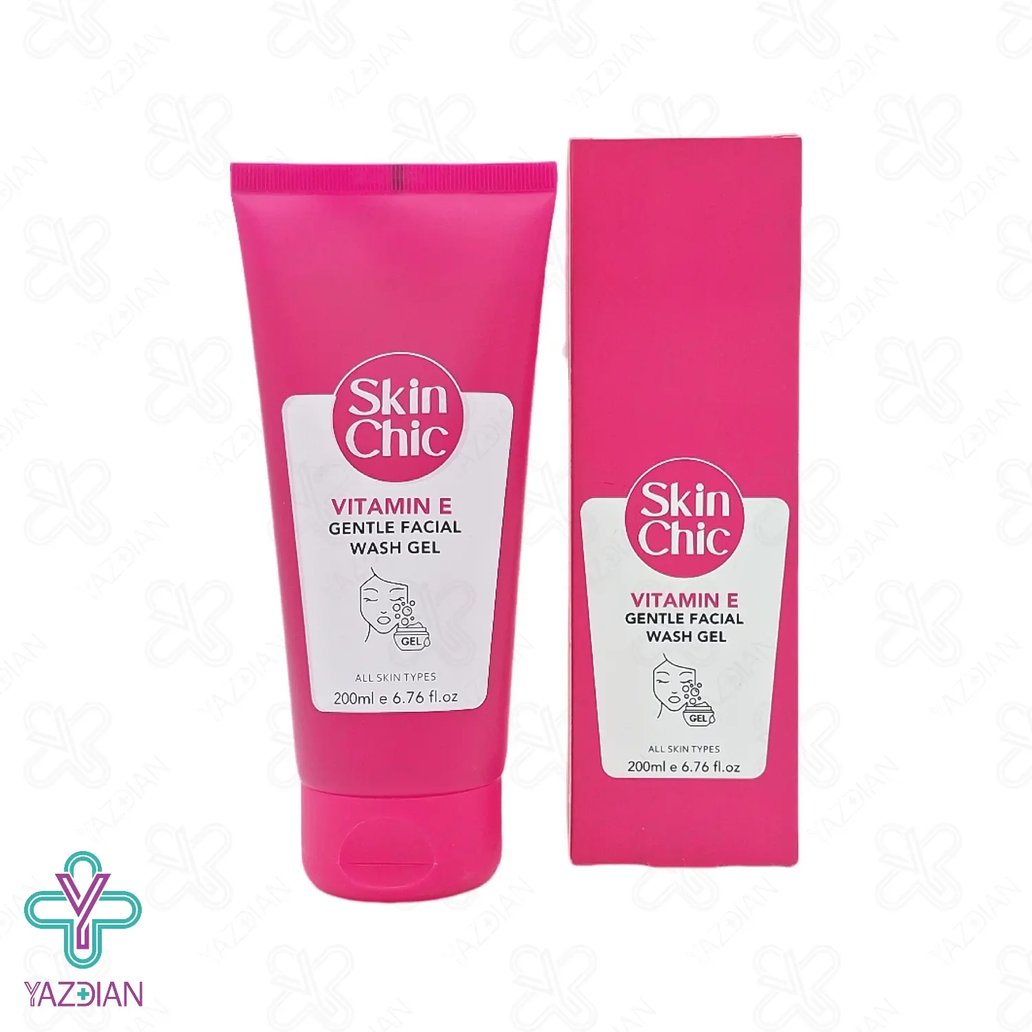 ژل شستشوی صورت ویتامین ای اسکین شیک (Skin Chic Vitamin E Gentle Facial Wash Gel 200 ml) پوست را از مواد آرایشی و انواع آلودگی تمیز می کند.
