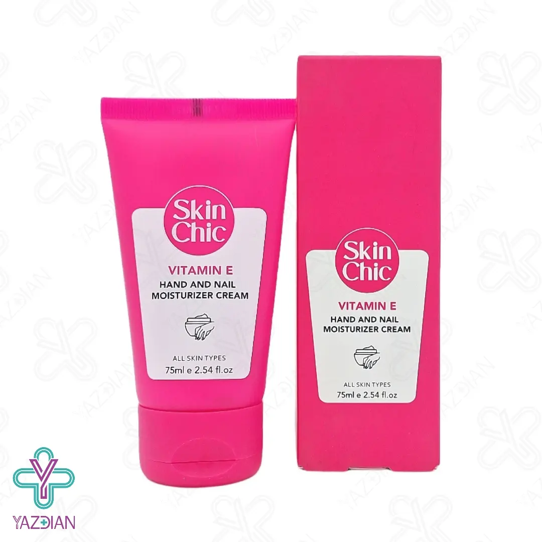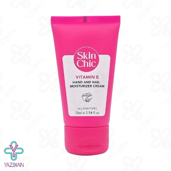 کرم دست و ناخن ویتامین ایی اسکین شیک (Skin Chic Vitamin E Hand And Nail Moisturizing Cream – 75 ml) سبب آب رسانی و حفظ رطوبت در پوست و اطراف ناخن می شود و در نتیجه از به وجود آمدن خشکی و پوسته شدن در این نواحی جلوگیری می کند و هم چنین با زیاد شدن استحکام ناخن مانع از خشکی و شکنندگی آن می شود، از دیگر ویژگی های این محصول این است که خشکی، خارش، قرمزی و التهابات ایجاد شده در پوست را برطرف می کند.