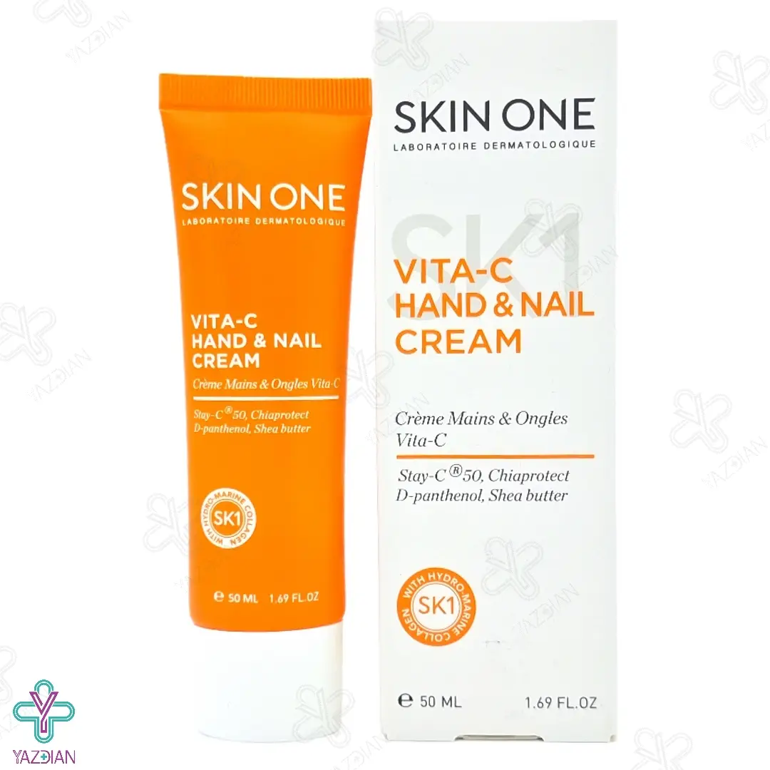 کرم دست و ناخن ویتامین ث اسکین وان (Skin One Vitamin C Hand And Nail Cream 50 ml) دارای ترکیبات آنتی اکسیدانی قوی و مؤثری بوده که می تواند چین و چروک های پوست دست را کاهش دهد و روند پیری آن را به تأخیر بیاندازند. این محصول همچنین رطوبت پوست دست را حفظ کرده و ضمن روشن کردن رنگ پوست، ناخن ها را نیز استحکام می بخشد.