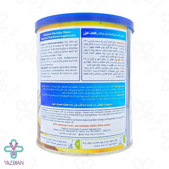 پودر فست میل استاندارد شکلاتی اسمارت نوتریشن - 400 گرم (Smart Nutrition Fast Meal Standard) از دسته مکمل های رژیمی غذایی سالمندان و بیماران می باشد که یک جایگزین عالی جهت تامین مواد مغذی و انرژی روزانه بدن می باشد. این محصول قابل مصرف به صورت خوراکی و گاواژ و یا به عنوان مکمل بین وعده های غذایی و حتی به صورت نوشیدنی به همراه غذا می باشد. بهره گیری از پروبیوتیک ها در این مکمل سبب شده است تا باکتری های مفید دستگاه گوارش تنظیم شوند و سلامت دستگاه گوارش حفظ شود.