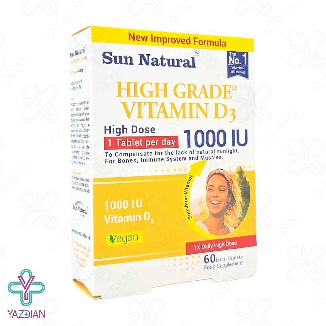 قرص ویتامین د3 1000 های گرید سان نچرال - 60 عددی