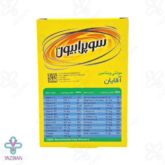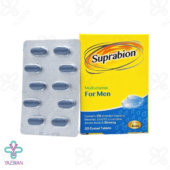 قرص سوپرابیون آقایان (Suprabion Multivitamin Mineral For Men 30 Tabs) به منظور تأمین نمودن ویتامین ها و مواد معدنی مورد نیاز آقایان تولید شده است و می تواند در جهت تقویت قوای جنسی مردان نیز موثر باشد.