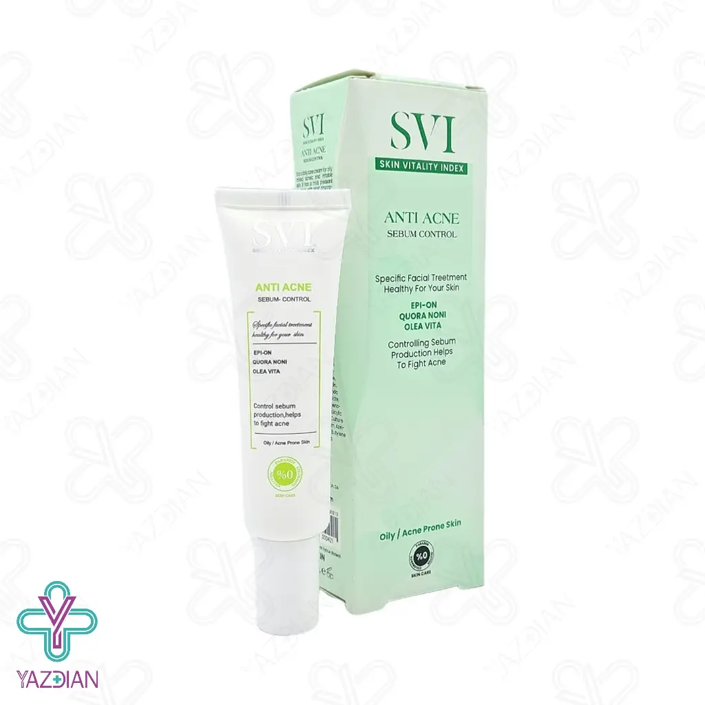 کرم آنتی آکنه اس وی آی - 30 میلی لیتر (SVI Anti Acne Sebum Control Cream) از دسته محصولات مراقبت از پوست می باشد که با کنترل میزان چربی مترشحه از غدد چربی پوست، بدون اینکه باعث ایجاد حساسیت شود، از بین برنده عالی جوش و آکنه های پوستی است و پوستی صاف و یکدست به شما هدیه می دهد.