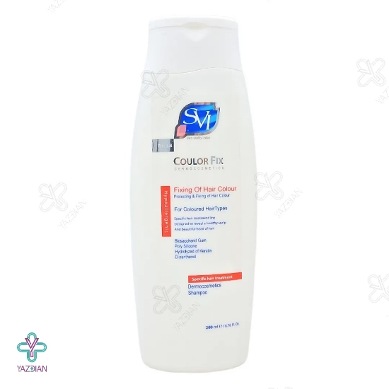 شامپو کالر فیکس اس وی آی مناسب موهای رنگ شده و کراتینه (SVI Colour Fix Shampoo 200 ml) با دارا بودن کراتین، ویتامین B5 و دیگر ترکیبات مؤثر و مفید موجود در فرمولاسیون خود می تواند بر روی موها لایه ای محافظتی ایجاد کرده و ضمن احیا و تثبیت نمودن رنگ موها، باعث ترمیم و بازسازی بافت های مو شود؛ همچنین نرمی، درخشندگی و حالت پذیری موها را افزایش دهد.