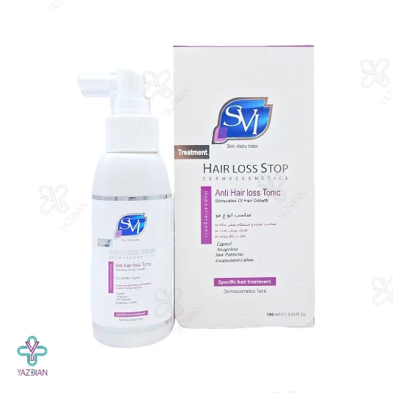 تونیک تقویت کننده و ضد ریزش اس وی آی (SVI Hair Loss Stop Tonic Anti Hair Loss ml) با بهره گیری از ترکیبات مؤثر و مفید در فرمولاسیون خود می تواند موی سر را تقویت کرده و ضمن جلوگیری از ریزش موها، رشد مجدد موها را تحریک نماید.