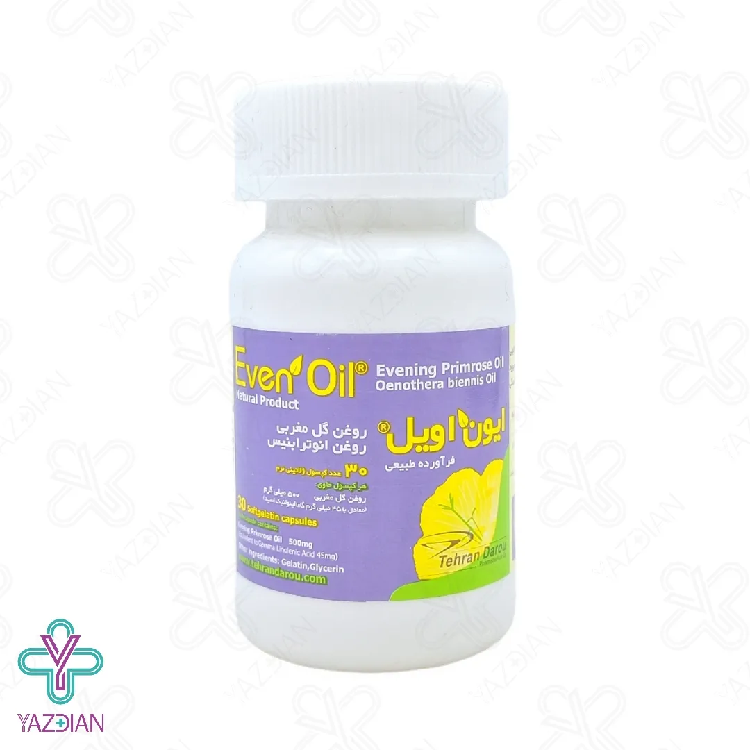 خانم ها در دوران یائسگی دچار مشکلاتی از جمله گرگرفتگی می شوند که بسیار شایع و ناخوشایند است این عارضه به علت کاهش سطح هورمون استرادیول به وجود می آید به همین دلیل برای رفع این مشکل استفاده از یک محصول مناسب توصیه می شود، کپسول ژلاتینی گل مغربی ایون اویل 500 میلی گرم تهران دارو (Tehran darou even oil evening primrose oil softgel – 30 pcs) عوارض یائسگی را کاهش می دهد، از دیگر ویژگی های این محصول این است که در پیشگیری از علائم سندروم پیش از قاعدگی و حین قاعدگی بسیار تاثیرگذار است، روغن گل مغربی از ترکیبات به کار رفته در این کپسول است که با تنظیم هورمون پروژسترون که در طول دوران یائسگی کم می شود، کمک می کند، این محصول هم چنین دارای ترکیباتی است که التهابات بدن را کاهش می دهد به همین دلیل با مصرف این کپسول علائم بیماری های التهابی مثل آرتریت روماتوئید درمان می شود، استفاده از این محصول بر روی فعالیت ها و روابط اجتماعی و جنسی خانم ها نیز اثرات مثبتی دارد.