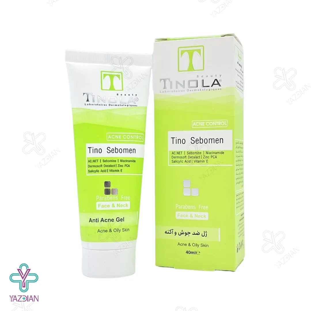 ژل ضد جوش و آکنه تینولا (Tinola Beauty Face And Neck Anti Acne Gel 40 ml) با بهره گیری از ترکیباتی مؤثر نظیر سالیسیلیک اسید، نیاسین آمید، سبومین، لاکتوفرین و گلیسرین در فرمولاسیون خود می تواند ترشحات سبوم پوست را تنظیم نماید و ضمن پیشگیری از ایجاد چربی و جوش، باعث کاهش میزان درخشندگی و براقیت پوست نیز شود.