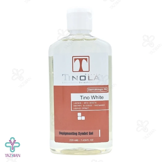 ژل شستشوی غیر صابونی روشن کننده تینولا (Tinola Skin And Body Lightening Syndet Gel 220 ml) با دارا بودن ترکیباتی مؤثر نظیر آلانتوئین، آربوتین، نیاسینامید و عصاره شیرین بیان در فرمولاسیون خود می تواند ضمن مهار آنزیم سنتز ملانین در پوست و رفع لک های پوستی، از ایجاد مجدد این لک ها در پوست ممانعت به عمل بیاورد.