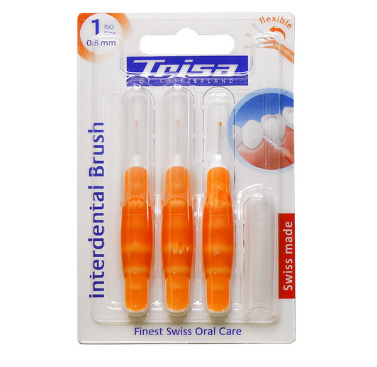 مسواک بین دندانی 0/8 میلی متر نارنجی تریزا (Trisa interdental brush 0/8 mm) یک محصول ایده آل برای افرادی است که دندان های خود را ارتودنسی و ایمپلنت کرده اند این محصول کوچک بوده و دارای برس نازک و باریک می باشد که جهت تمیز کردن فاصله های بین دندان، اطراف روکش و پروتزهای دندانی، اطراف براکت ها و زیر بریج و اطراف دندان های ایمپلنت شده مورد استفاده قرار می گیرد مسواک نارنجی تریزا دارای قطر 0/8 بوده که همین ویژگی موجب شده تا فضای باریک بین دندان ها و جرم وپلاک های ایجاد شده بین دندان ها را به طور کامل از بین ببرد این محصول دارای تارهای نایلونی با کیفیت بالا بوده که موجب شست وشوی بهتر و دوام زیاد مسواک می شود برس این مسواک دارای درپوش محافظ پلاستیکی بوده که موجب تمیز نگه داشتن سر مسواک پس از استفاده و حمل آسان آن می شود.