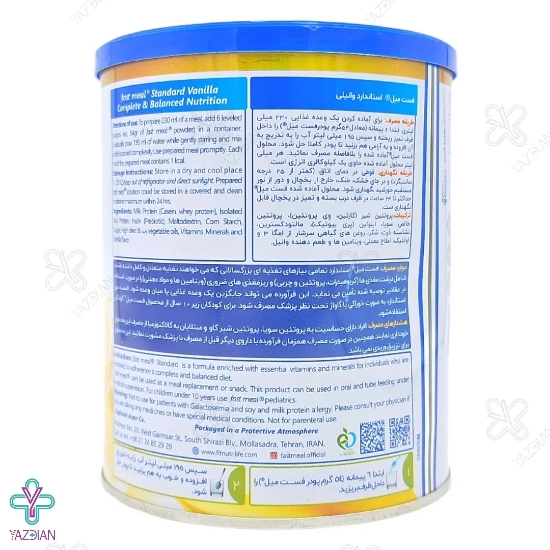 با ریختن 54 گرم از پودر فست میل (6 پیمانه) در داخل ظرفی تمیز و اضافه کردن تدریجی 195 میلی لیتر آب به آن و هم زدن کامل این دو ترکیب، می توانید مقدار 230 میلی لیتر محلول را آماده نموده و آن را بلافاصله در یک وعده غذایی مصرف نمایید.