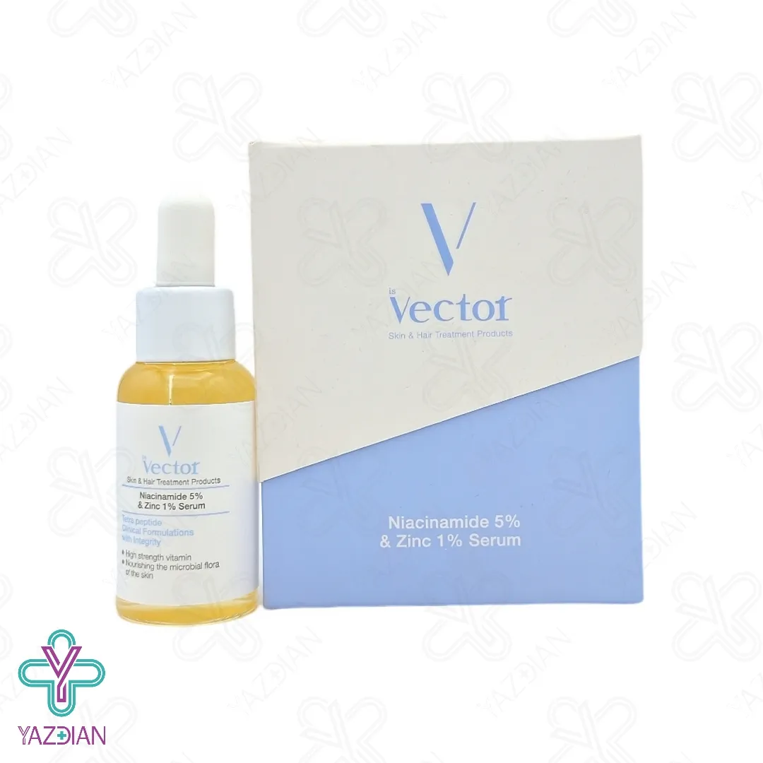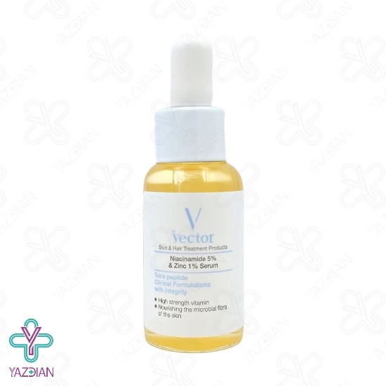 سرم ضد جوش نیاسین آمید 5% و زینک 1% وکتور - 30 میلی لیتر (Vector Niacinamide 5% & Zinc 1% Serum 30ml) یکی از موثرترین محصولات مراقبت از پوست می باشد که با فرمولاسیون ویژه خود، در درمان مشکلات پوستی موثر می باشد. این سرم در کوتاه ترین زمان ممکن چربی پوست را کنترل کرده و التهابات پوستی را می کاهد.