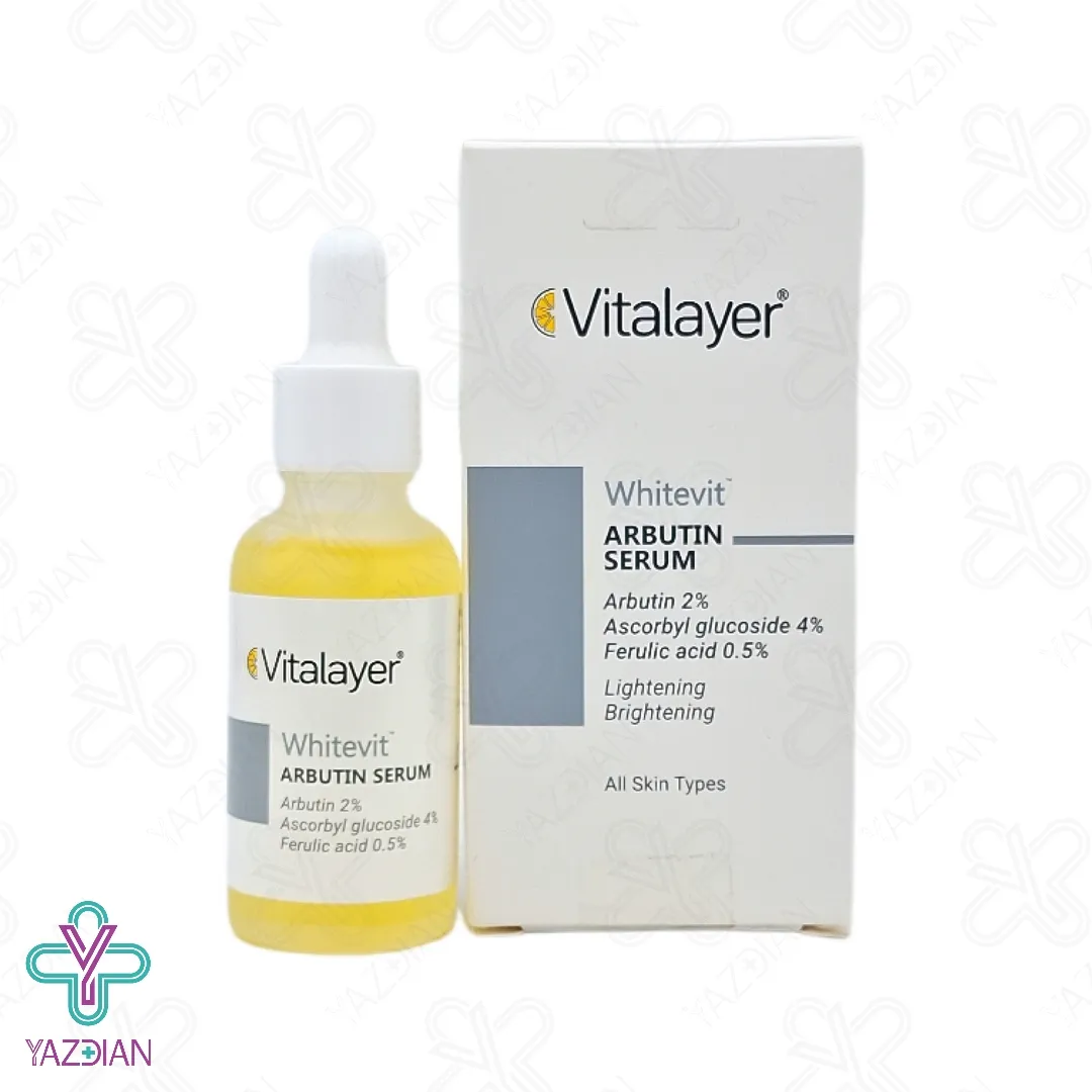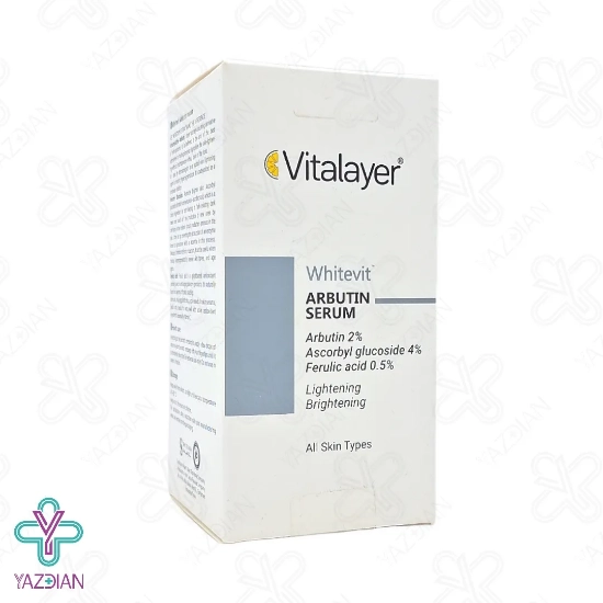 سرم ضد لک آربوتین وایت ویت ویتالیر - 30 میلی لیتر (Vitalayer Whitevit Arbutin Serum ۳۰ ml) یک محصول عالی جهت کنترل و کاهش لک و تیرگی های پوستی می باشد؛ چرا که حاوی ترکیب آربوتین که یک روشن کننده موضعی پوست است می باشد. آربوتین با مهار عملکرد آنزیم تیروزیناز، هیپرپیگمنتاسیون را متوقف می کند. از دیگر مشتقات طبیعی بکار گیری شده در این سرم فرولیک اسید می باشد. فرولیک اسید یک آنتی اکسیدان است که بطور طبیعی در مواد غذایی مصرفی یافت می شود. این آنتی اکسیدان، رنگدانه های پوستی را یکدست می کند و ساختار پوست را بهبود می بخشد.