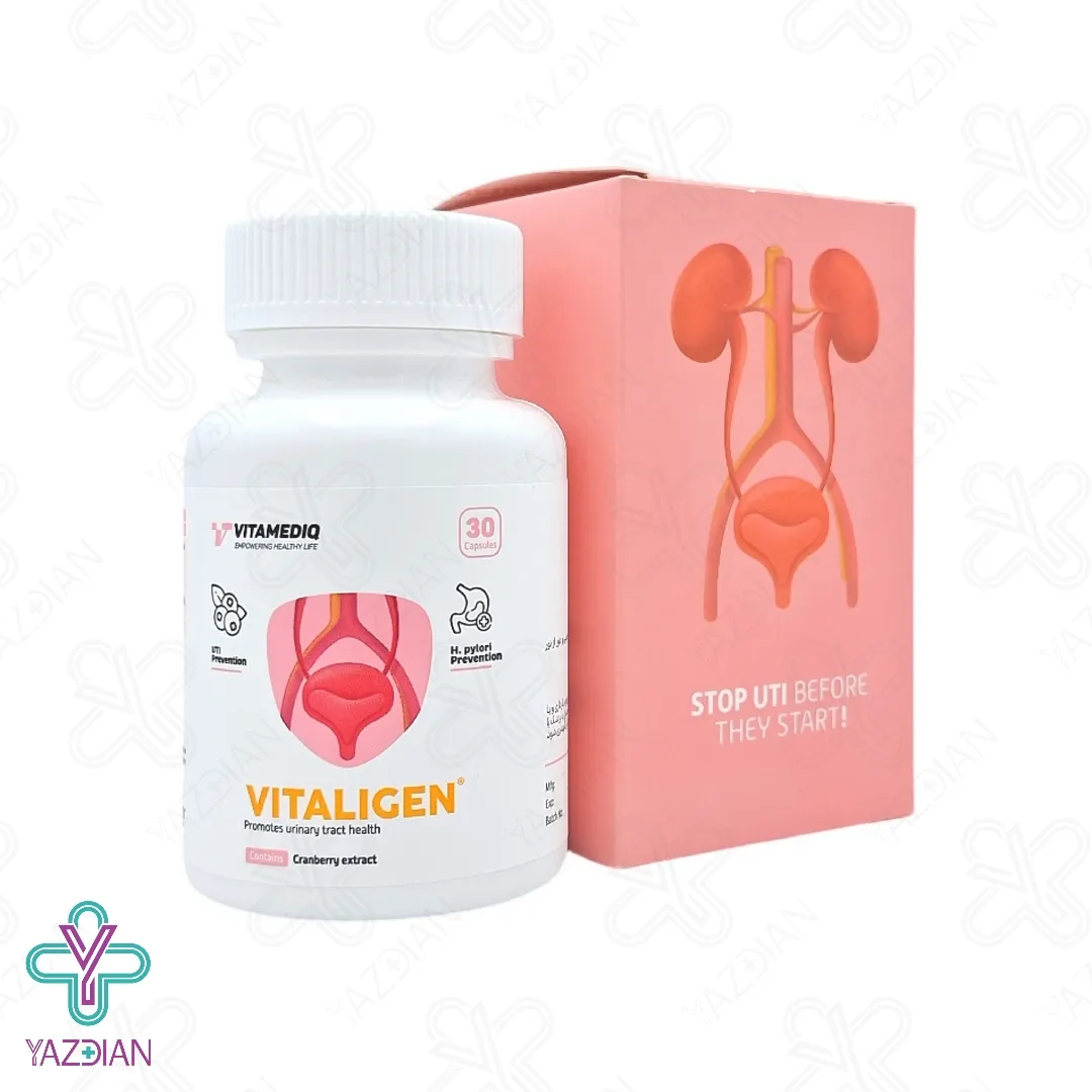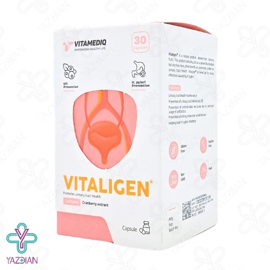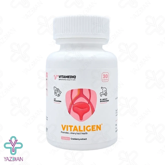 کپسول کرنبری ویتالیژن ویتامدیک - 30 عددی (Vitamediq Cranberry Vitaligen ۳۰ Caps) یک داروی فرموله شده از میوه کرنبری می باشد که در کنار خاصیت آنتی اکسیدانی، خواص زیادی دارد. این میوه سرشار از ویتامین سی، اسید سیتریک و بنزوئیک اسید می باشد.