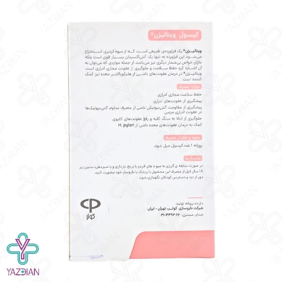 روزی یک کپسول کرنبری ویتالیژن را همراه با آب میل بفرمایید.