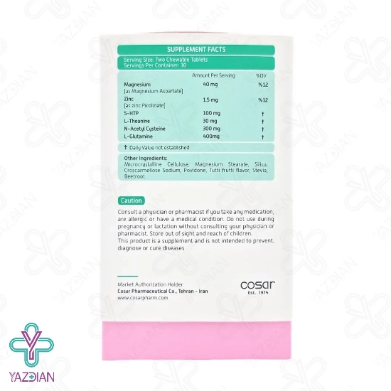 منیزیم، زینک،HTP-5، ال تیانین، ان استیل سیتین، ال گلوتامین.