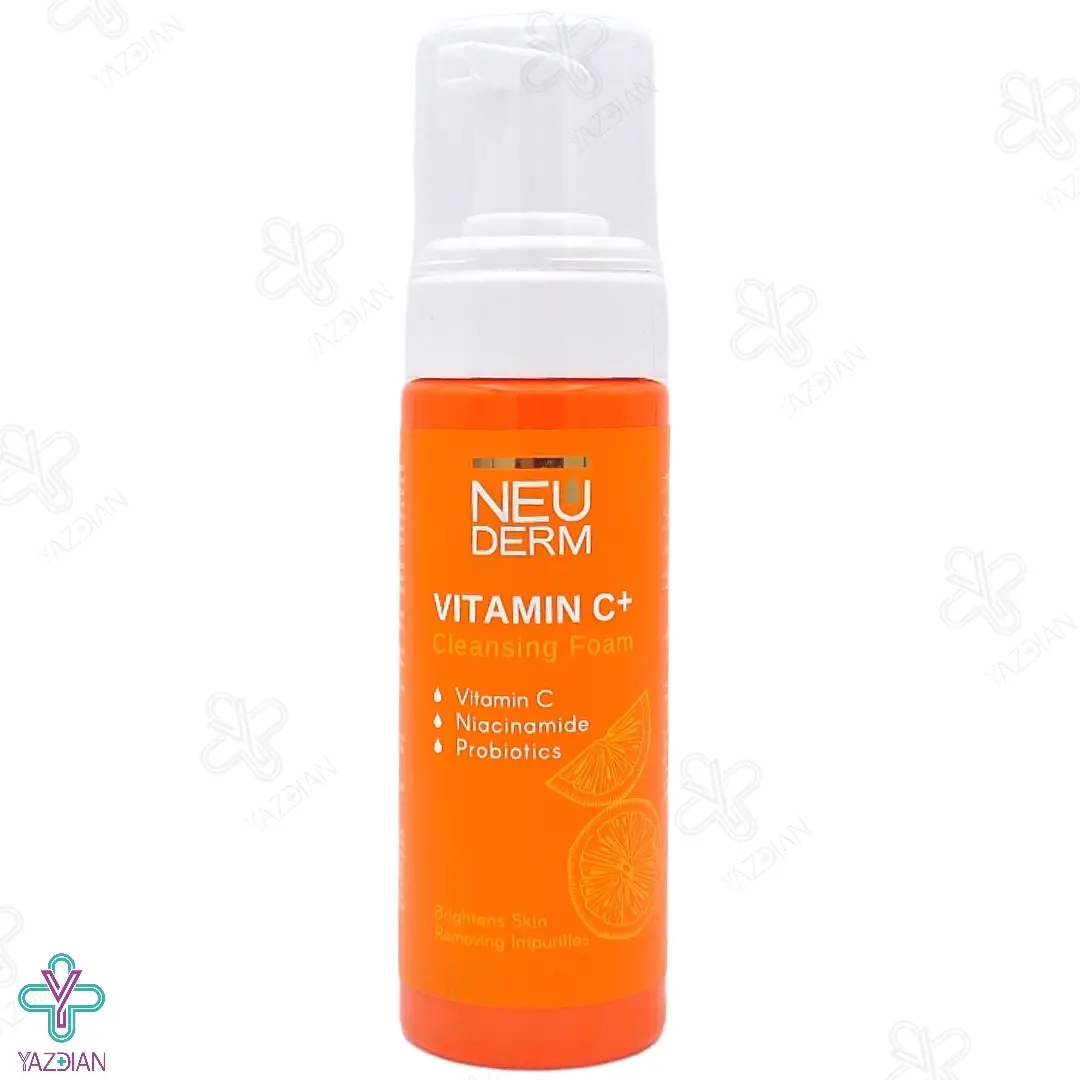 فوم شستشوی صورت ویتامین ث پلاس نئودرم (Neuderm Vitamin C Plus Cleansing Foam) دارای خواص آنتی اکسیدانی موثر و مفید بوده که میزان تولید کلاژن را در پوست افزایش داده و علاوه بر تمیزی مناسب پوست و منافذ آن از ایجاد آکنه در پوست جلوگیری می کند. از دیگر ویژگی های این فوم شوینده صورت وجود عصاره ی پرتقال در آن است که لکه های تیره ی پوست را به مرور زمان کم رنگ می کند. این محصول هم چنین پوست را شفاف و درخشان کرده و از ایجاد التهاب در آن جلوگیری می کند.
