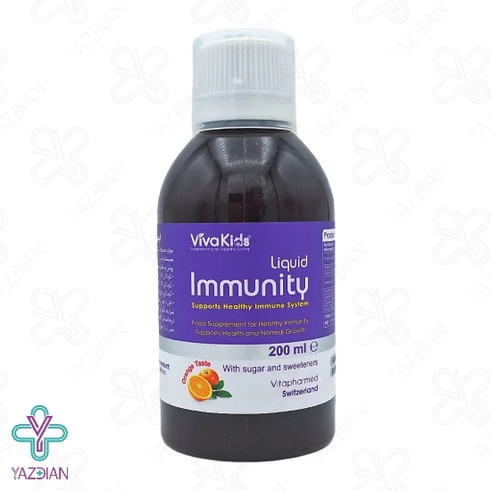شربت تقویت سیستم ایمنی ایمیونیتی ویواکیدز - 200 میلی لیتر (Viva Kids Immunity Liquid 200 ml) یکی از بهترین دارو های تقویت بدن کودک می باشد که با برخورداری از عصاره پروپولیس، انواع ویتامین ها و عناصر کمیاب، تقویت کننده عالی سیستم ایمنی کودکان و حمایت کننده رشد و سلامت کودکان می باشد. در ترکیبات این محصول از گلوتن و لاکتوز استفاده نشده است و بدین خاطر کودکان مبتلا به سلیاک یا عدم تحمل لاکتوز نیز می توانند از آن بهره ببرند. این شربت دارای طعم مطلوب پرتقال می باشد.
