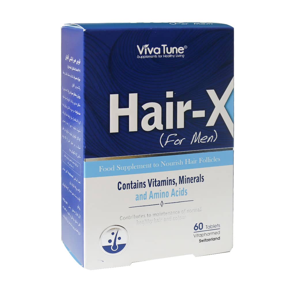 قرص تقویت مو هیر ایکس آقایان - 60 عددی (Viva Tune Hair-X For Men 60 Tabs) یک مکمل رژیمی غذایی عالی سرشار از ویتامین ها و مینرال های لازم و ضروری بدن است که جهت تقویت مو و مهار ریزش آن ها فرموله شده است. استفاده از مس در این محصول باعث می شود تا میزان ملانین سازی مو ها بالا برود و رنگدانه مو ها حفظ شود. بدین صورت رنگ طبیعی مو ها حفظ شده و از سفیدی زودرس آن ها پیشگیری شود. بهره گیری از بیوتین، زینک و سیلیکون در ترکیبات این قرص باعث ضخامت بخشی به تار های مو شده و آن ها را مستحکم می سازد.