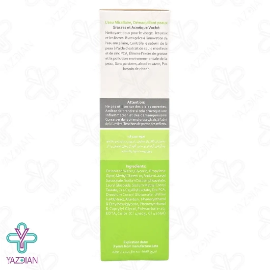 محلول پاک کننده میسلار واتر پوست چرب و مستعد آکنه وچه (Voche Cleansing Micellar Water For Oily And Acne Prone Skin) با بهره گیری از تکنولوژی میسلار واتر، به عنوان یک پاک کننده ملایم و ایده آل برای افراد دارای پوست چرب و مستعد آکنه مورد استفاده قرار می گیرد و ضمن پاکسازی کامل پوست آنان از مواد آرایشی، چربی و آلودگی های محیطی، ترشح چربی پوستشان را نیز کنترل می نماید.