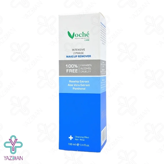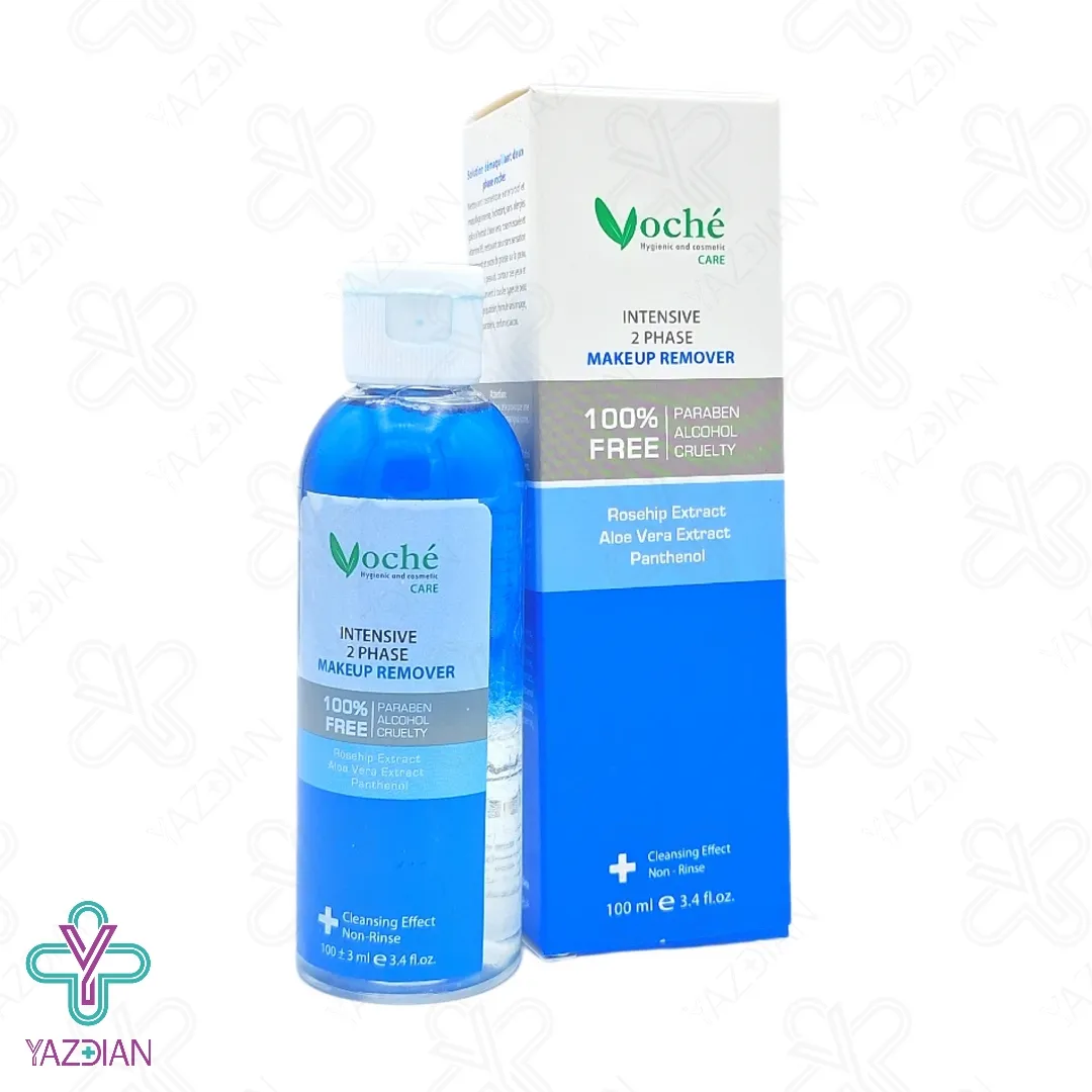 محلول پاک کننده آرایش دوفاز وچه - 100 میلی لیتر (Voche Intensive ۲ Phase Makeup Remover ۱۰۰ ml) به خوبی میکاپ صورت، چربی های اضافه و آلودگی ها را از پوست صورت پاکسازی می کند. این محصول قابلیت استفاده برای تمامی انواع پوست را دارد و هیچ حساسیتی یرای پوست ایجاد نمی کند.