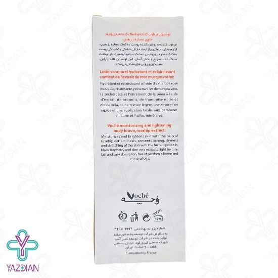 لوسیون مرطوب کننده و شفاف کننده رزهیپ وچه - 150 میلی لیتر (Voche Rosehip Moisturizing Body Lotion ۱۵۰ ml) ساخت شرکت محبوب توسعه کسر آسیا در کشور عزیزمان ایران می باشد که بدلیل بافت بسیار سبکی که دارد، به آسانی روی پوست پخش می شود و روی پوست سنگینی نمی کند.