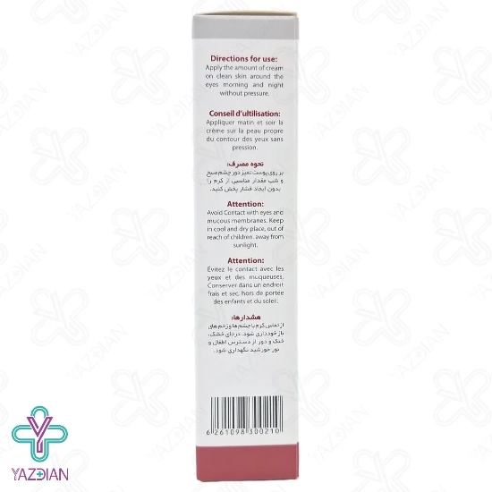 در صبح و شب به مقدار کافی از این کرم به پوست دور چشم خود زده و با حرکات ضربه ای روی پوست ماساژ دهید تا جذب شود.